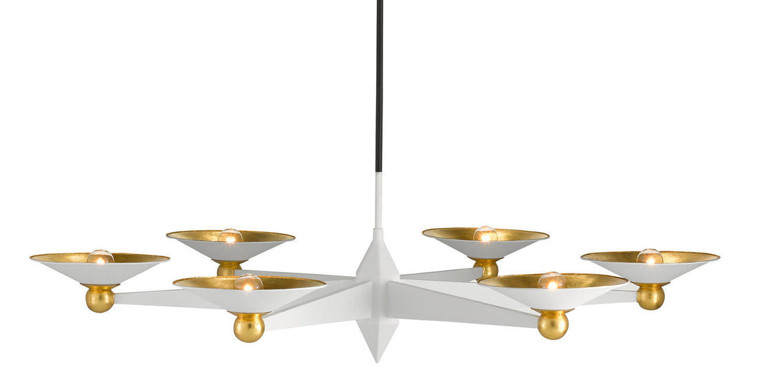 Currey and Company Six Light Chandelier from the Moderne Collection collection in Gesso White/Contemporary Gold Leaf finish