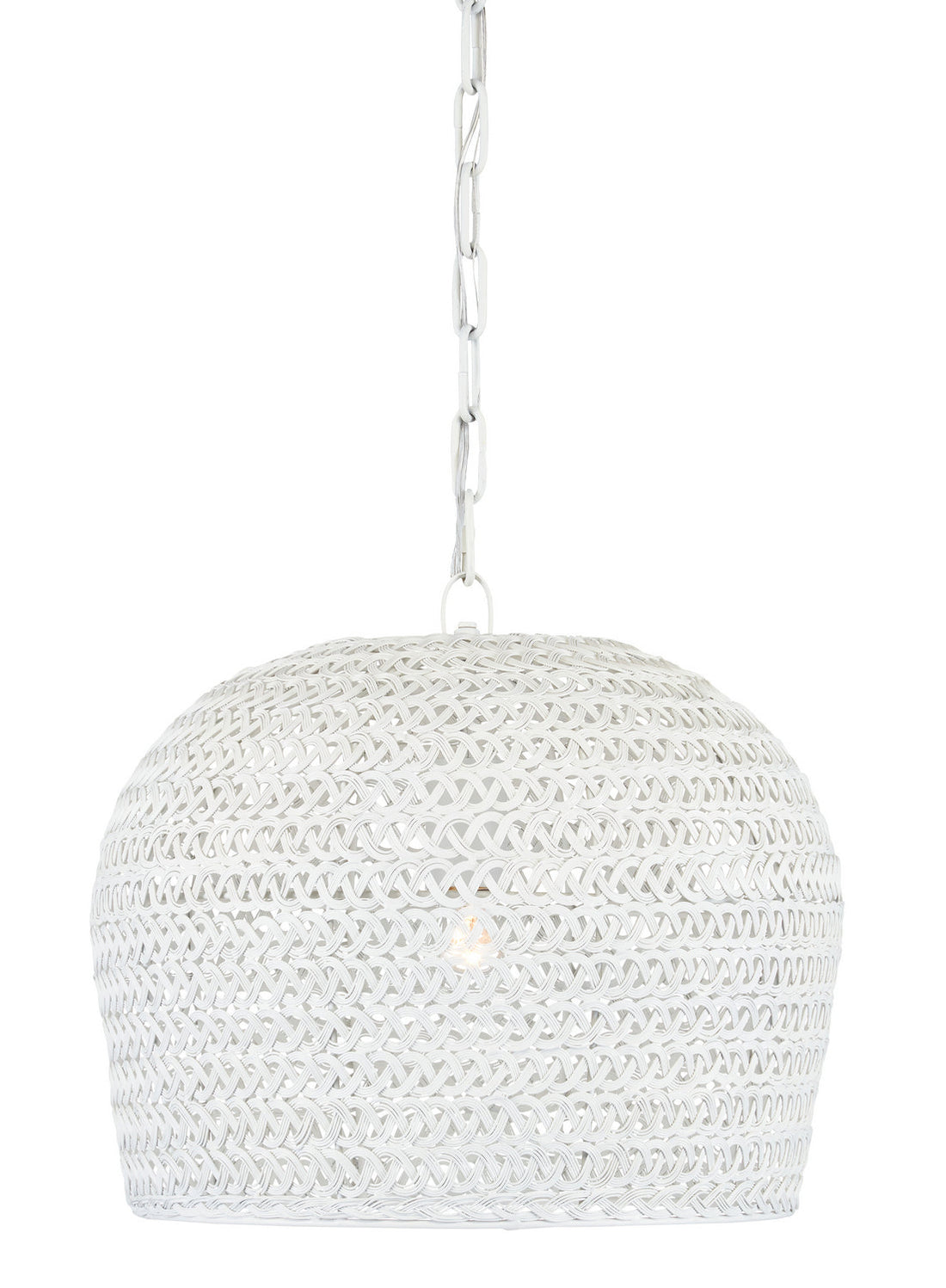 The Piero White Pendant may appear to be woven from a natural plant material, but...