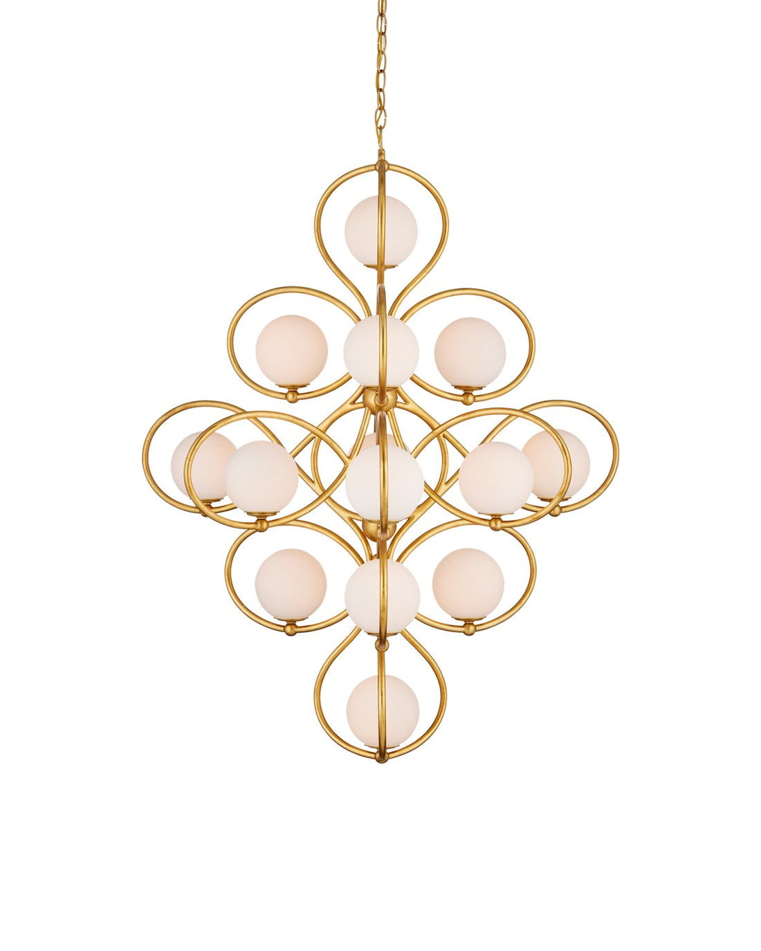 Currey and Company 14 Light Chandelier from the Storrs Collection collection in Contemporary Gold Leaf/Contemporary Gold/White finish