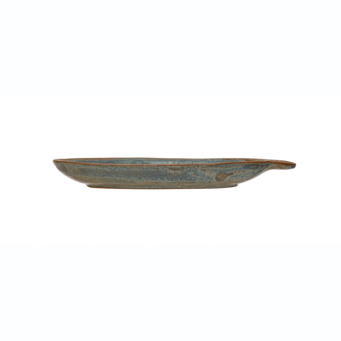 Design Shop Stoneware Plate with Handle and Brown Rim, Reactive Glaze