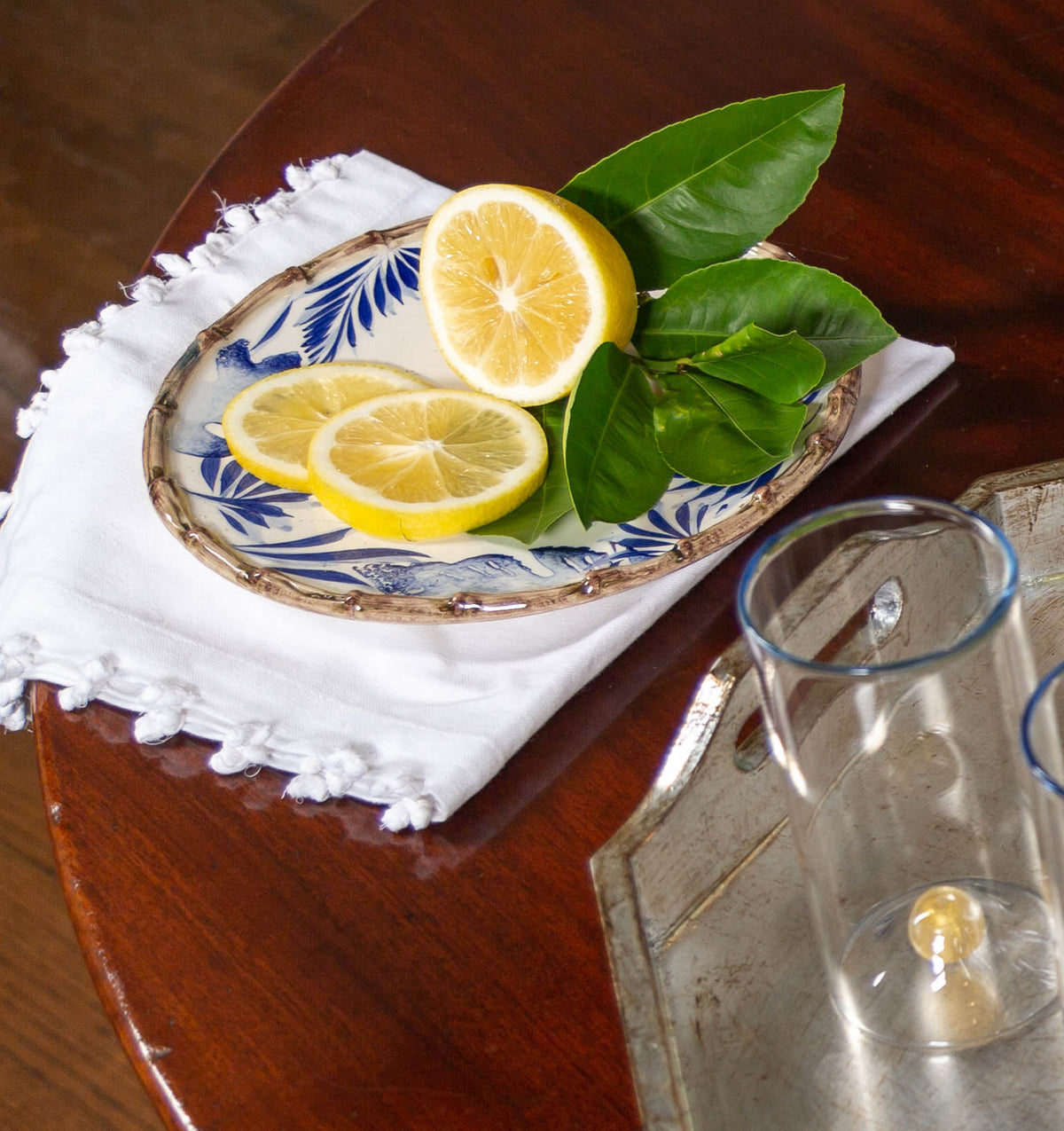 Abigails Compagnia Dinner Plate, Blue Leaves w/ Bamboo, Small, Set of 4