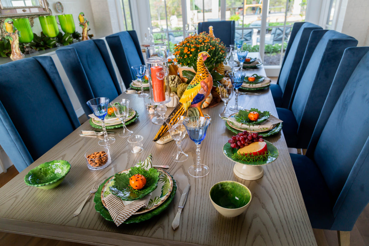 Abigails Compagnia Dinner Plate, Green Leaves w/ Bamboo, Large, Set of 4