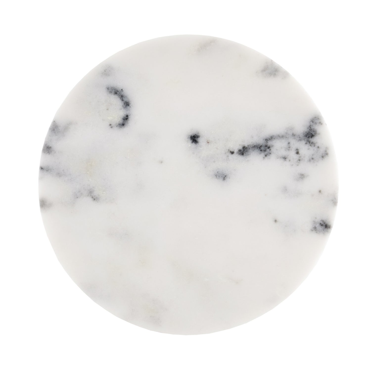 Created in three sections, the Quince White Marble Accent Table is turned like a wood table would be to reveal the personality of the natural stone. The petite white marble accent table has spots and veining in dark and light gray that flow in mysterious patterns along its surface. These attributes of the natural material will vary significantly from table to table. The personable small accent table reads like a sophisticated chess piece that exudes checkmate style.