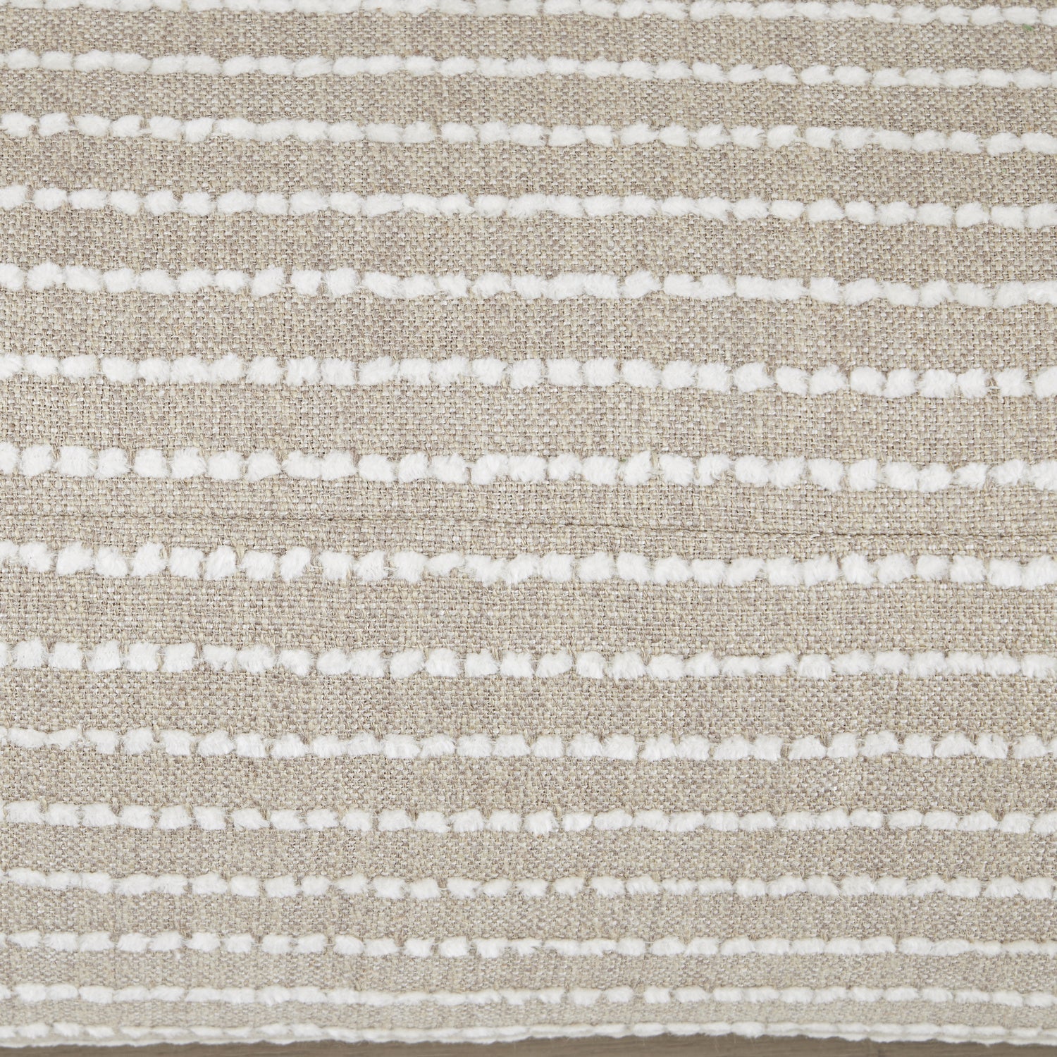 The Norene Gray Wing Chair is made of Mindi wood in a fog gray finish that matches the darker tones in the nubby upholstery fabric. The raised white lines bring a textural feel to the seat and back cushions, as does the way the wood grain shows through the finish that lightens the material so beautifully. Special attributes about the design of this gray wing-back chair are the bobbin, or spool, ornamentations that are intermittently placed along its frame and the way the base supports the seat rail on three sides, leaving the front open.