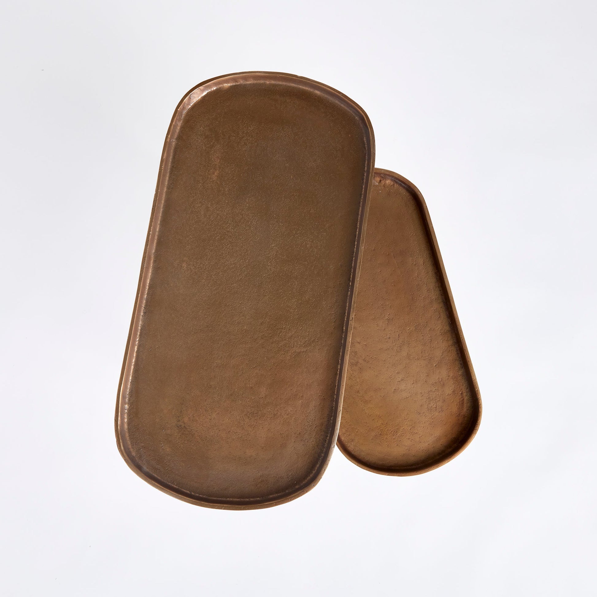 Who doesn't love the versatility of a nested side table? In an electroplated cast aluminum top and iron legs, these two pieces fit together nicely, or can be separated to accommodate your layout. Innovative and beautiful, indeed.