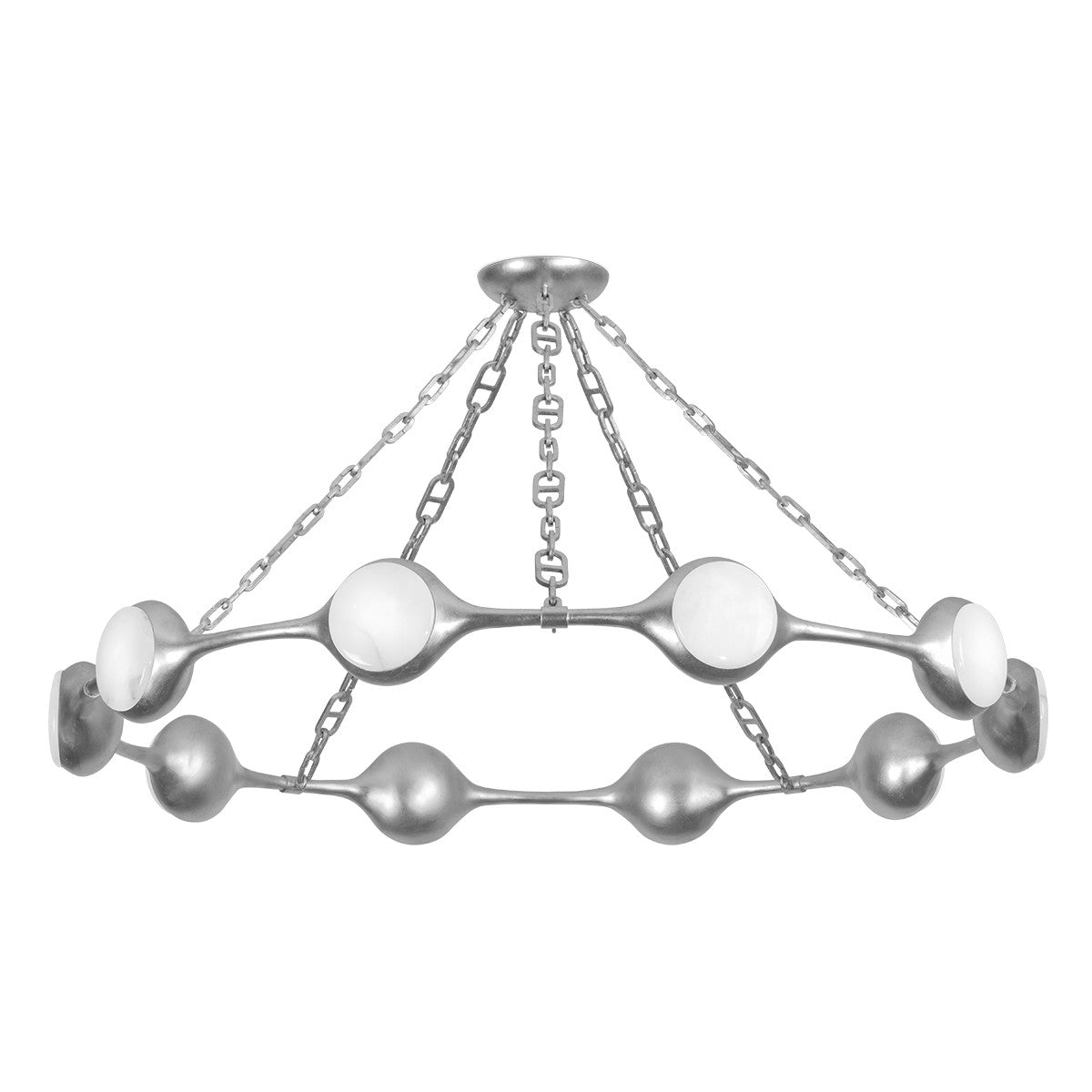 Inspired by Noz Nozawa's stackable rings, Riviere features a classic silhouette accented by striking details and powered by energy-efficient LED. Organic, pod-shaped heads encase ice onyx discs within a bezel setting reminiscent of the way a gemstone is set into a ring. Finished in Vintage Gold Leaf, the distinctive chain suspending the chandelier adds another jewelry-like element to the design. Riviere is available as an 8 or 10-light chandelier and a single-light sconce. Part of our Noz Nozawa collection. Due to the one-of-a-kind nature of the medium, exact colors and patterns may vary slightly from the image shown.