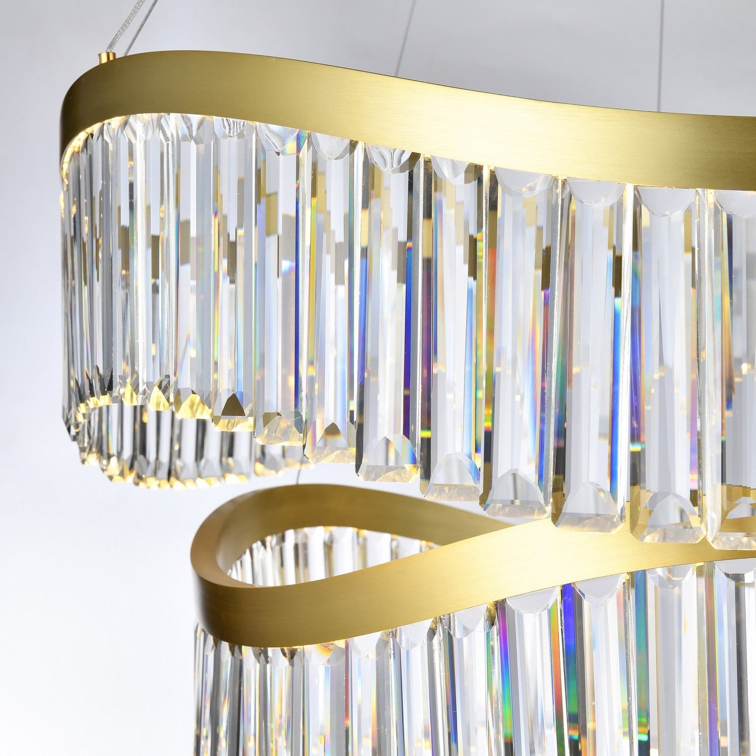 From the Jules collection by Kevin Kraemer, this two tier chandelier is a stunning symphony of light and elegance. Its multi-faceted crystal edges sparkle with mesmerizing light refraction, bringing brilliance to any space. The frame, crafted from luxurious brass, complements its opulent design, while the convenient "push-pin" system and aircraft-style cables allow for effortless height adjustments. Complete with a 3CCT switch, you can tailor the ambiance by choosing from warm, neutral, or cool color temperatures (3K, 4K, 5K).