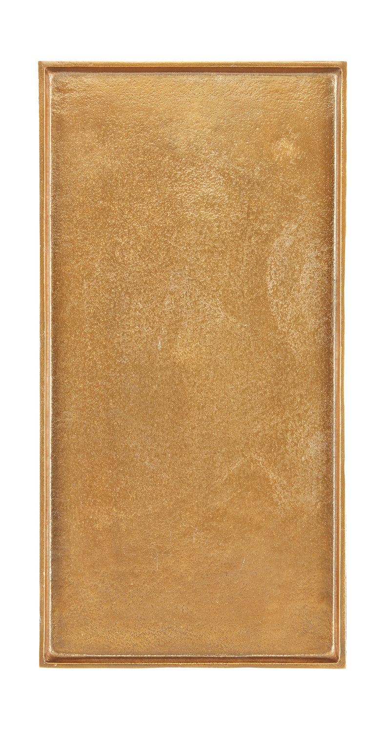 The Boyles Brass C Table has a profile that is so handsome you may think twice about disturbing its good looks with accessories. The simple iron base in a black forged finish lifts an aluminum tray-like top in antique brass. This cantilevered side table is an expressive feature for any spot where a personality-packed table is needed.