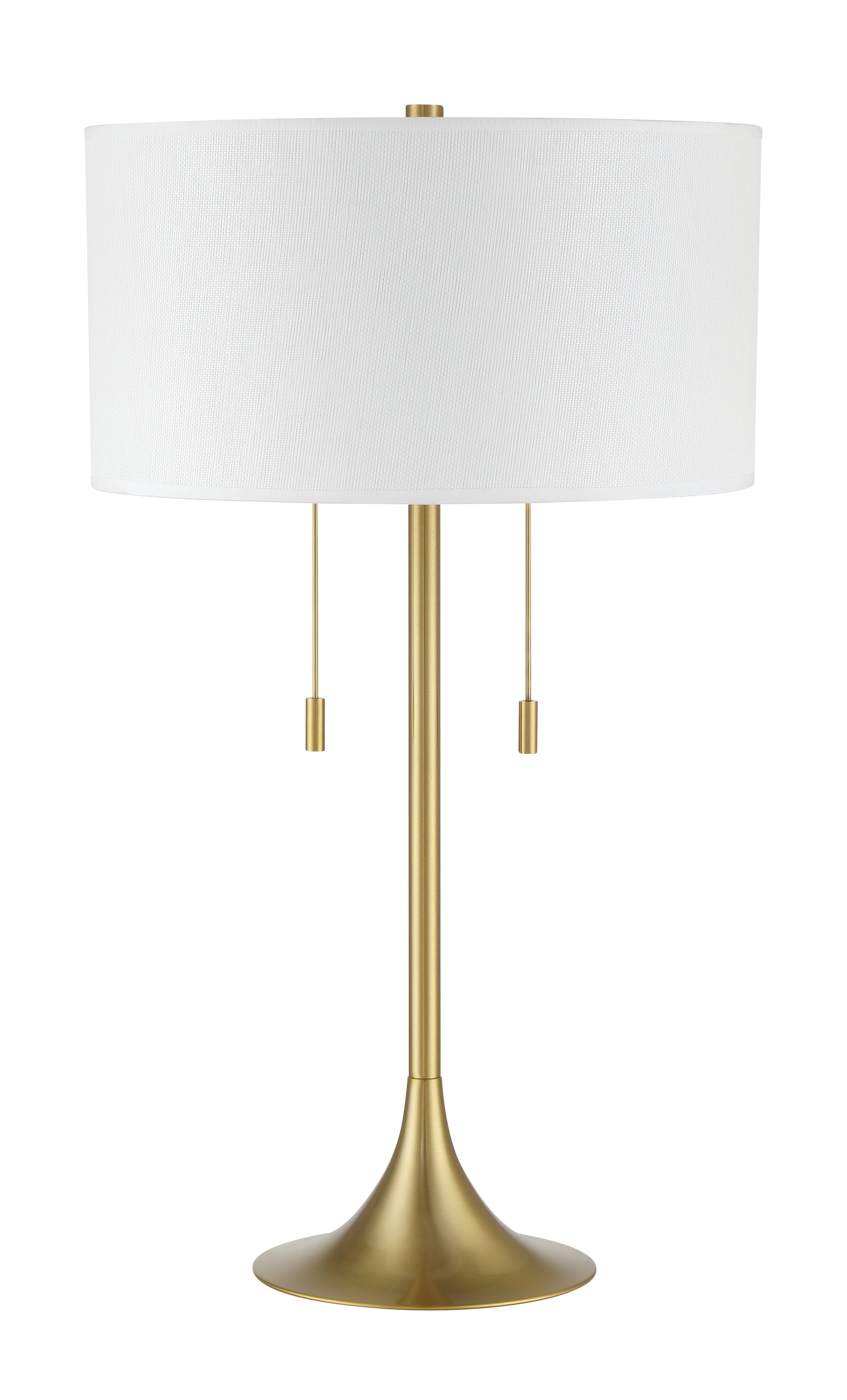 This stunning table lamp is the perfect finishing touch for any room. The Neely Table Lamp from Craftmade comes in your choice of either Brushed Polished Nickel or Satin Brass. The lamp features a large hardback drum shade and has two independent pull chain sockets, allowing for versatile lighting options. Please note that it requires two medium-base bulbs, with a maximum wattage of 60W each (bulbs not included).