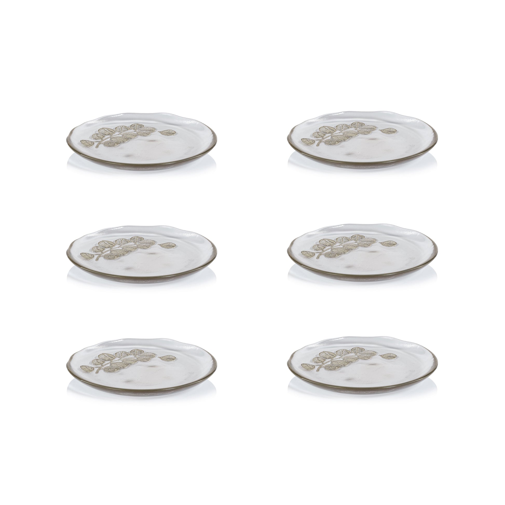 Zodax Jarrah Eucalyptus Design Glass Dessert Plates, Set of 6